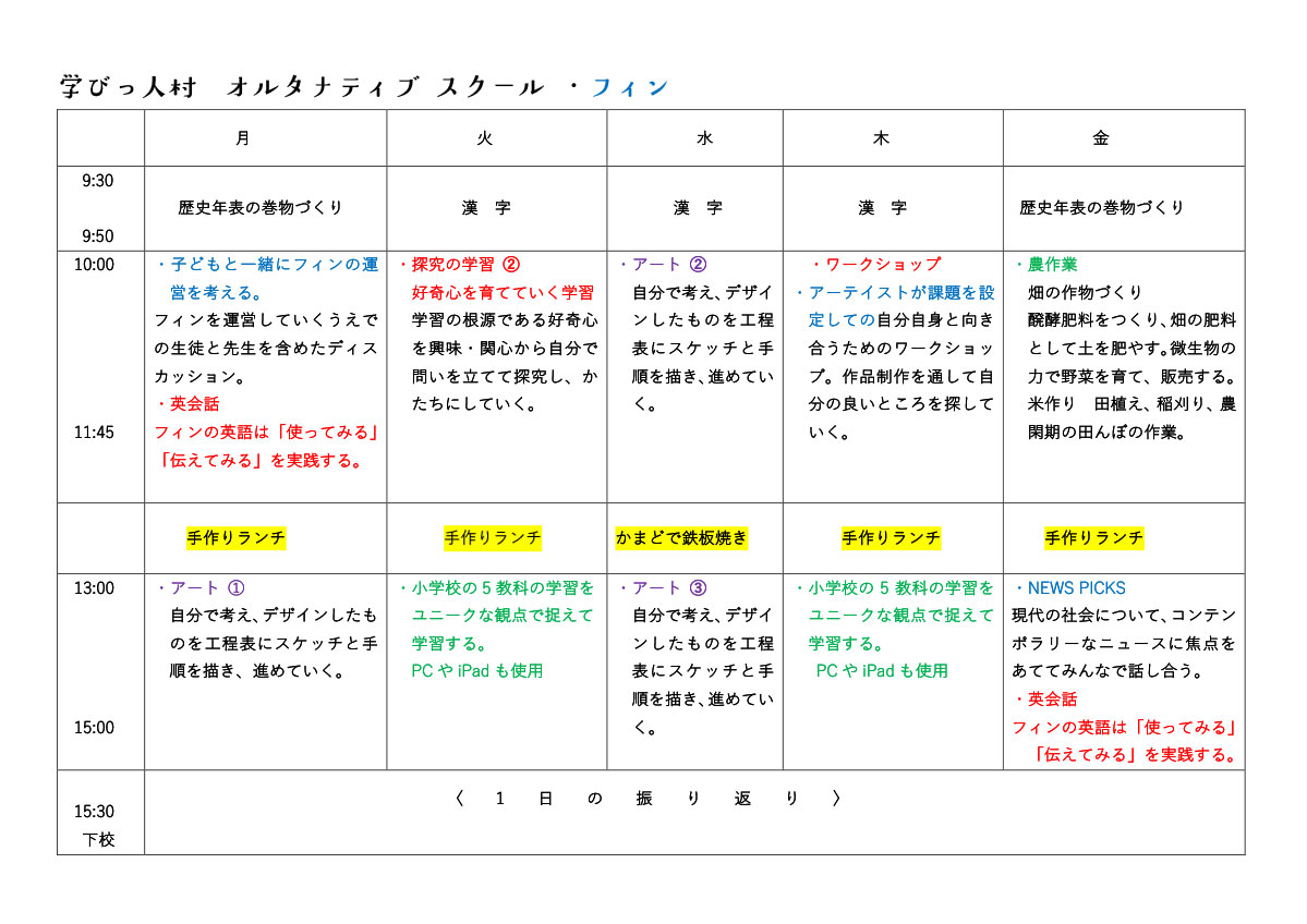 | 9:20 | アトリエ着 朝のルーティン(漢字・年表作り) |